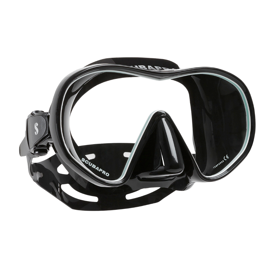 El modelo Solo es una máscara monocristal moderna que ofrece un campo de visión panorámica de volumen reducido en un diseño hidrodinámico. El faldón de silicona de doble sellado se adapta al rostro para ofrecer un cómodo cierre que evita la entrada de agua. Las hebillas con fijaciones flexibles sobre el faldón le permiten enganchar fácilmente la correa antideslizante para lograr un ajuste perfecto. Esta máscara es una de las favoritas de los buceadores recreativos.